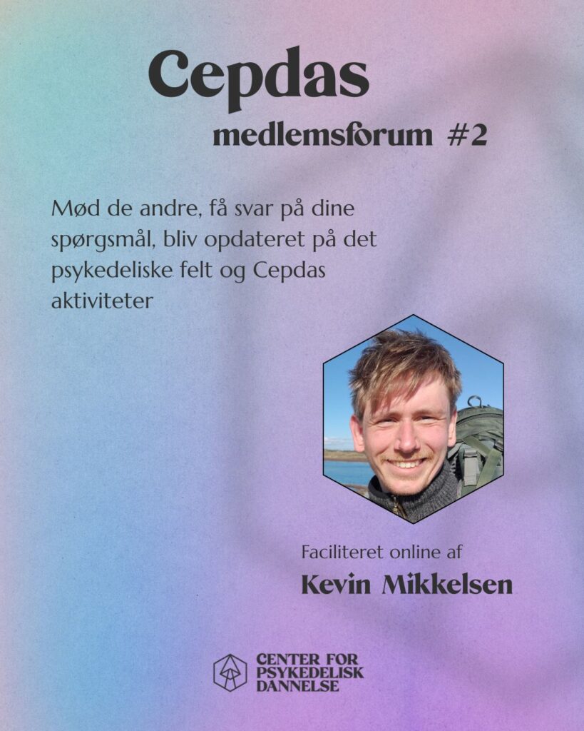 Er du nysgerrig på det seneste nye i det psykedeliske felt? Hvad vi går og bakser med i Cepdas maskinrum? Hvad vi planlægger af nye aktiviteter? Har du et spørgsmål omkring psykedelika du brænder inde med? Måske har du noget feedback til vores arbejde. Eller måske kunne du bare godt tænke dig at møde nogle af de andre medlemmer i Cepda.